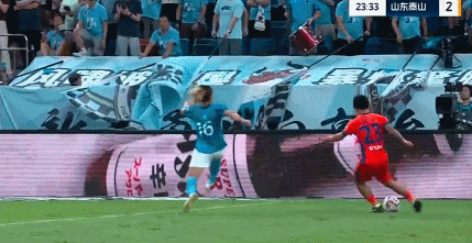 在李小恒打入处子球之后,瓦科很快为山东泰山扩大领先优势。第22分钟,谢文能右路精准横传,无人盯防的瓦科头球冲顶破门,2比0!